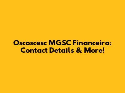 Oscoscesc MGSC Financeira: Contact Details & More!