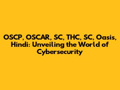 OSCP, OSCAR, SC, THC, SC, Oasis, Hindi: Your Ultimate Guide