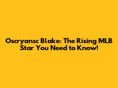 Oscryansc Blake: The Rising MLB Star You Need To Know!