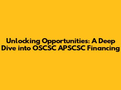 Hey guys, let's talk about something super important for anyone looking to get ahead, especially when it comes to accessing funds for various needs: OSCSC APSCSC financing. You might have stumbled upon these terms, and honestly, they can sound a bit complex at first. But trust me, understanding what they are and how they work can be a real game-changer for your financial journey. Think of this as your friendly guide, breaking down the nitty-gritty so you can make informed decisions and tap into the resources available to you. We're going to explore what these acronyms stand for, the types of financing they typically offer, who can benefit, and why it matters. Get ready to demystify OSCSC APSCSC financing and see how it can help you achieve your goals, whether it's expanding a business, funding education, or securing personal needs. It’s all about empowering you with knowledge, so let’s dive in!