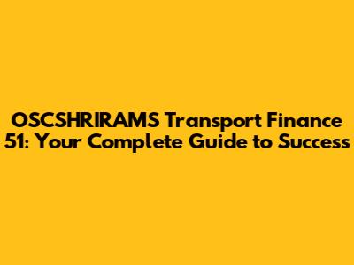 OSCSHRIRAMS Transport Finance 51: Your Complete Guide