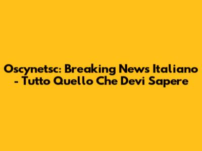 Oscynetsc: Ultime Notizie E Aggiornamenti In Italiano