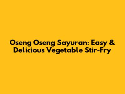 Hey guys! Are you looking for a super easy and healthy dish that's packed with flavor? Look no further! Oseng oseng sayuran, or Indonesian vegetable stir-fry, is the perfect answer. It's quick to make, incredibly versatile, and a fantastic way to get your daily dose of veggies. Let's dive into this amazing recipe and explore why it's a staple in Indonesian cuisine.