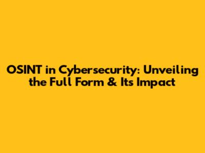 OSINT In Cybersecurity: Unveiling The Full Form & Its Impact