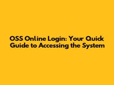 OSS Online Login: Your Quick Guide To Accessing The System