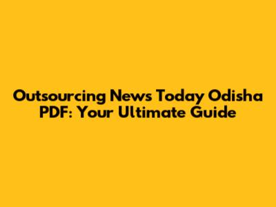 Outsourcing News In Odisha: Latest Updates & PDF Insights
