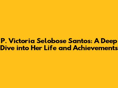 Let's explore the life and accomplishments of P. Victoria Selobose Santos. In this article, we'll cover her journey, career highlights, and significant contributions. Whether you're a long-time admirer or just discovering her work, get ready to delve into the fascinating story of P. Victoria Selobose Santos.