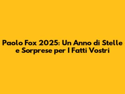 Ciao a tutti, appassionati di astrologia e fan di I Fatti Vostri! Siete pronti a scoprire cosa riserveranno le stelle nel 2025? Quest'anno, ci affidiamo alle previsioni del celebre Paolo Fox, l'astrologo più amato d'Italia, per svelare i segreti del futuro. In questo articolo, esploreremo a fondo le previsioni di Paolo Fox per il 2025, concentrandoci su come i diversi segni zodiacali vivranno l'anno, con particolare attenzione alle dinamiche che potrebbero influenzare le personalità coinvolte nel programma televisivo I Fatti Vostri. Analizzeremo i transiti planetari significativi, gli aspetti astrologici chiave e come questi potrebbero tradursi in opportunità e sfide per ciascun segno. Che siate curiosi di sapere cosa vi aspetta in amore, nel lavoro, o nella salute, preparatevi a un viaggio affascinante attraverso l'oroscopo del 2025, guidati dalla sapiente voce di Paolo Fox e dal suo sguardo attento sul mondo astrologico. Quindi, mettetevi comodi, prendete appunti e preparatevi a scoprire cosa le stelle hanno in serbo per voi nel 2025! Le previsioni di Paolo Fox sono sempre molto attese, e con questo approfondimento cercheremo di offrirvi una panoramica completa e dettagliata, adatta sia ai principianti che agli esperti di astrologia. Non perdete l'occasione di pianificare al meglio il vostro anno, sfruttando al massimo le energie positive e preparandovi ad affrontare con coraggio le eventuali difficoltà. Questo sarà il vostro anno, preparatevi a brillare!