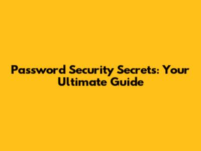Password Security Secrets