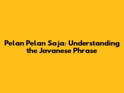 Pelan Pelan Saja: Understanding The Javanese Phrase