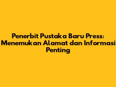 Penerbit Pustaka Baru Press: Alamat Lengkap Dan Informasi Penting