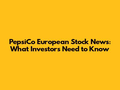 PepsiCo European Stock News: What Investors Need to Know