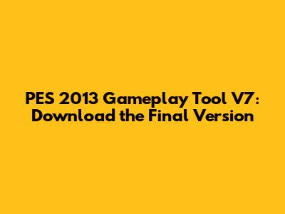 PES 2013 Gameplay Tool V7: Download The Final Version