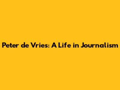 Peter De Vries: A Life In Journalism