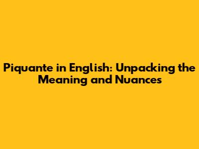 Piquante In English: Meaning, Usage, And Cultural Context