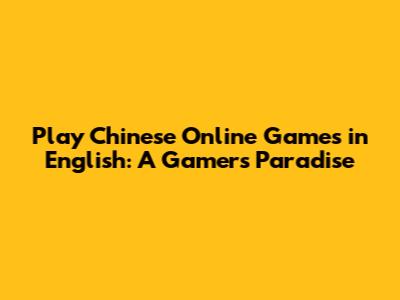 Play Chinese Online Games In English: A Gamer's Paradise
