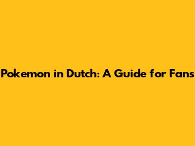 Pokemon In Dutch: A Guide For Fans