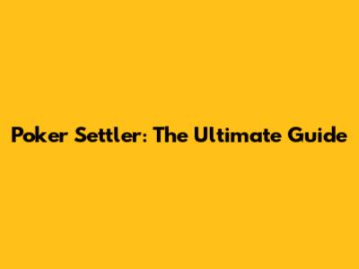 Poker Settler: The Ultimate Guide