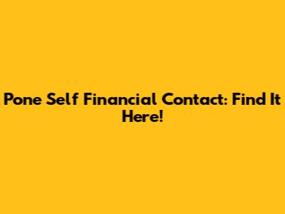 Pone Self Financial Contact: Find It Here!