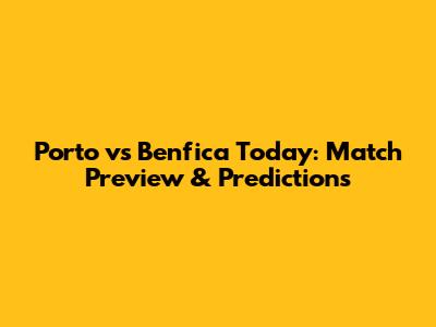 Porto Vs Benfica Today: Match Preview & Predictions