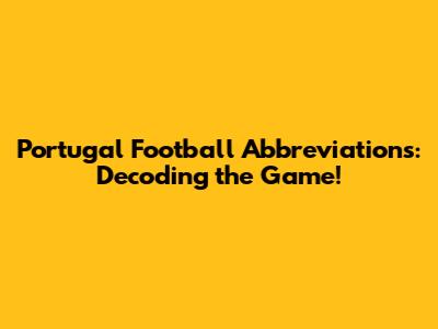 Portugal Football Abbreviations: Decoding The Game!