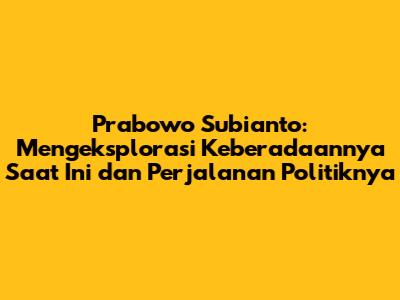 Prabowo Subianto adalah sosok yang dikenal luas dalam kancah politik Indonesia. Pertanyaan yang sering muncul adalah Prabowo sekarang ada dimana? Artikel ini akan membahas secara mendalam tentang keberadaannya saat ini, aktivitasnya, serta perjalanan panjangnya dalam dunia politik Indonesia. Kita akan menyelami berbagai aspek yang membentuk sosok Prabowo, mulai dari latar belakang keluarga, karir militer, hingga kiprahnya di dunia politik.