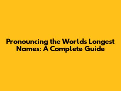 Pronouncing The World's Longest Names: A Complete Guide