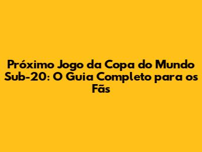 Próximo Jogo Copa Do Mundo Sub-20: Tudo O Que Você Precisa Saber