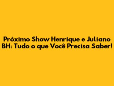 E aí, galera! Se você é fã de sertanejo e adora a dupla Henrique e Juliano, prepare-se, porque o próximo show deles em Belo Horizonte (BH) está chegando! Neste artigo, vamos te contar tudo o que você precisa saber sobre essa apresentação imperdível: data, local, venda de ingressos, e muito mais. Então, já pega a caneta e o papel (ou abre as notas no celular) para não perder nenhum detalhe. Vamos nessa!
