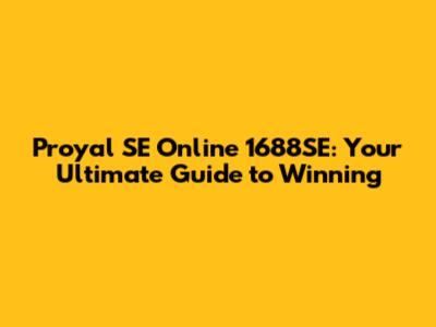 Winning Strategies and Tips for Proyal SE Online 1688SE