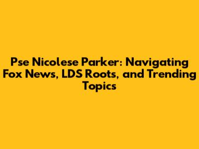 Hey everyone! Let's dive into a fascinating mix of topics surrounding Pse Nicolese Parker. We're talking about her journey, her presence on Fox News, her roots in the LDS (Latter-day Saint) faith, and what's currently making headlines. It's a blend of media, faith, and personal stories, so grab your coffee (or your beverage of choice), and let's get started. This article explores the intersection of Pse Nicolese Parker's life with Fox News, her religious background, and the ongoing discussions surrounding her. We will delve into her career, the public's perception, and how her faith influences her professional life. Let's unpack the buzz surrounding this prominent figure.