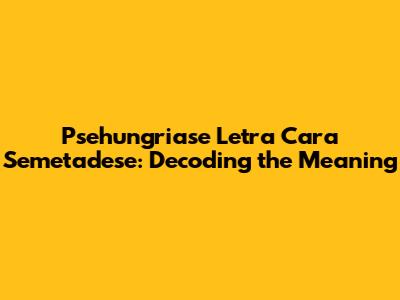 Psehungriase Letra Cara Semetadese: Decoding The Meaning