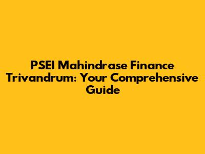 PSEI Mahindrase Finance Trivandrum: Your Guide