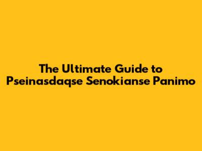 The Ultimate Guide to Pseinasdaqse Senokianse Panimo