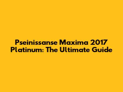 Pseinissanse Maxima 2017 Platinum: The Ultimate Guide