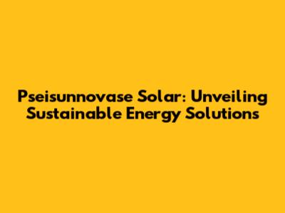 Pseisunnovase Solar: Your Guide To Sustainable Energy