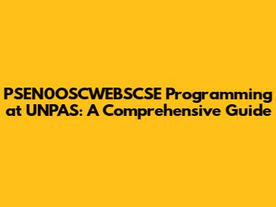PSEN0OSCWEBSCSE Programming At UNPAS: A Comprehensive Guide