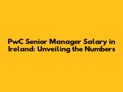 PwC Senior Manager Salary In Ireland: A Detailed Guide