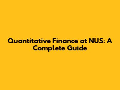 Quantitative Finance At NUS: A Complete Guide