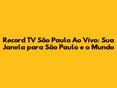 - Divirta-se! A Record TV São Paulo ao vivo é uma ótima forma de se manter informado e se divertir. Aproveite a programação e desfrute de tudo o que a Record TV São Paulo tem a oferecer. Assista aos seus programas favoritos, acompanhe as notícias e divirta-se com a programação da Record TV São Paulo. A Record TV São Paulo está sempre em busca de oferecer o melhor conteúdo para você.