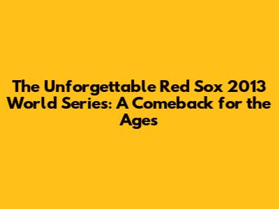 Red Sox 2013: A World Series Comeback Story