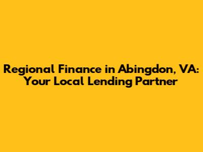 Hey guys! Are you searching for reliable financial solutions in Abingdon, Virginia? Look no further! This article dives deep into the services offered by Regional Finance in Abingdon, VA, making sure you have all the info you need to make informed decisions. Whether you're dealing with unexpected expenses, planning a home improvement project, or just need a little financial boost, understanding your local options is key. We'll explore the types of loans they offer, how their application process works, and what makes them a trusted part of the Abingdon community. So, let's get started and see how Regional Finance can help you achieve your financial goals!
