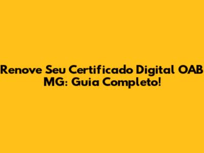 Renove Seu Certificado Digital OAB MG: Guia Completo!