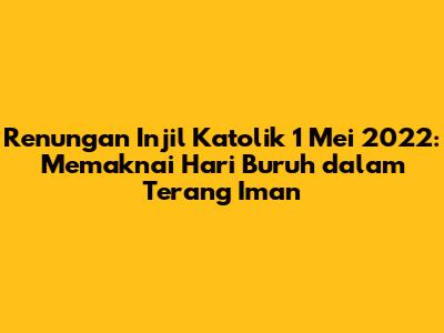 Dengan merenungkan Injil dan mengaplikasikan nilai-nilai yang diajarkan-Nya, kita dapat membangun masyarakat yang lebih adil, di mana setiap orang dihargai dan diperlakukan dengan martabat. Injil Katolik 1 Mei 2022 menjadi panduan moral bagi kita untuk bertindak, mendukung mereka yang membutuhkan, dan memperjuangkan keadilan sosial. Kawan-kawan, mari kita jadikan Hari Buruh sebagai momen untuk refleksi dan aksi, dengan berpegang teguh pada iman kita dan berjuang untuk dunia yang lebih baik.