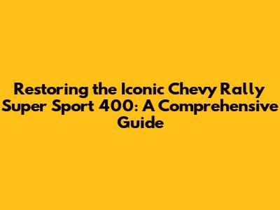 Hey gearheads, are you ready to dive deep into the world of classic cars? Today, we're taking a thrilling ride back in time to explore the Chevrolet Rally Super Sport 400, a true icon of automotive history. This beauty, a blend of power and style, has captured the hearts of car enthusiasts for generations. Restoring a Chevy Rally Super Sport 400 isn't just about fixing up a car; it's about preserving a legacy and bringing a piece of history back to life. This guide is your ultimate companion on this exciting journey, packed with tips, tricks, and insights to help you revive your own Chevy Rally Super Sport 400 to its former glory. Let's get started, shall we?