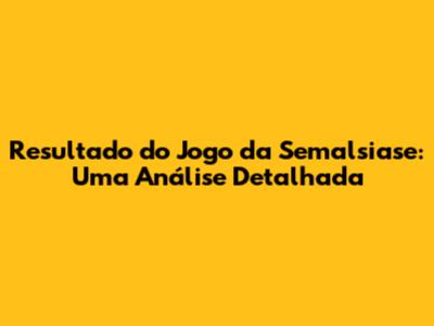Resultado Do Jogo Da Semalsiase: Análise Completa E Previsões