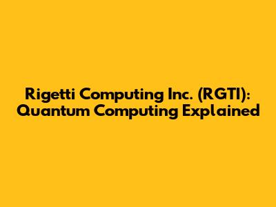 Rigetti Computing Inc. (RGTI): Quantum Computing Explained