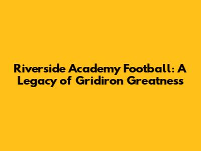 The History of Riverside Academy Football: A Tradition of Excellence