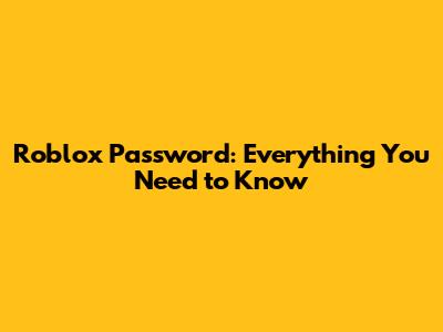 Roblox Password: Everything You Need To Know