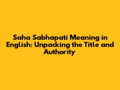 Saha Sabhapati Meaning Explained: Title And Authority